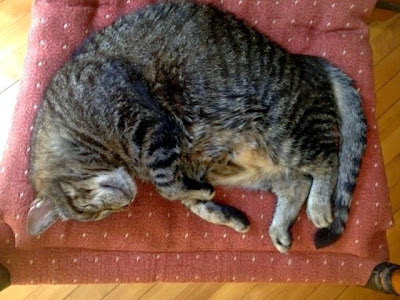 Webster is on the mend and enjoying his dog bed in a new location. I brought the one down from the attic because it has an egg-crate foam mattress and a rectangular shape so he can stretch out. I put it in his favorite spot so he can see me in the kitchen and look down the hall into my bedroom. He's such a good patient. I'm still at a loss about what was wrong with him but I'm pretty sure he was stung by yellow jackets. I have to remember to replenish my supply of antihistamine capsules that helped his rapid breathing get back to normal. He had the same reaction once before when I witnessed the evil insects stinging him.